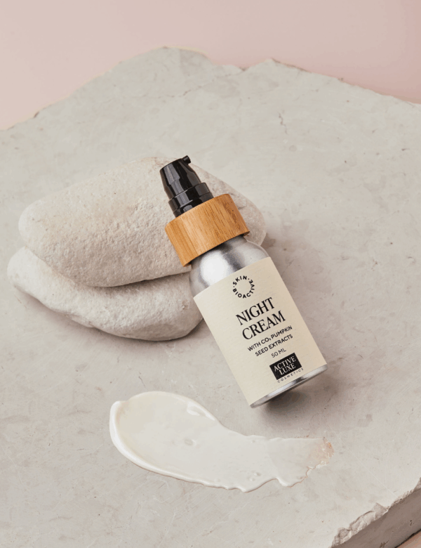 Bioaktivne sestavine izvlečka bučnih semen preprečujejo proces staranja kože ter krepijo in ščitijo kožno bariero. Izvleček nemške kamilice kožo intenzivno pomirja in neguje, lipidi sončničnega in arganovega olja jo globinsko nahranijo, niacin pa skrbi za njeno elastičnost in enakomerno polt.