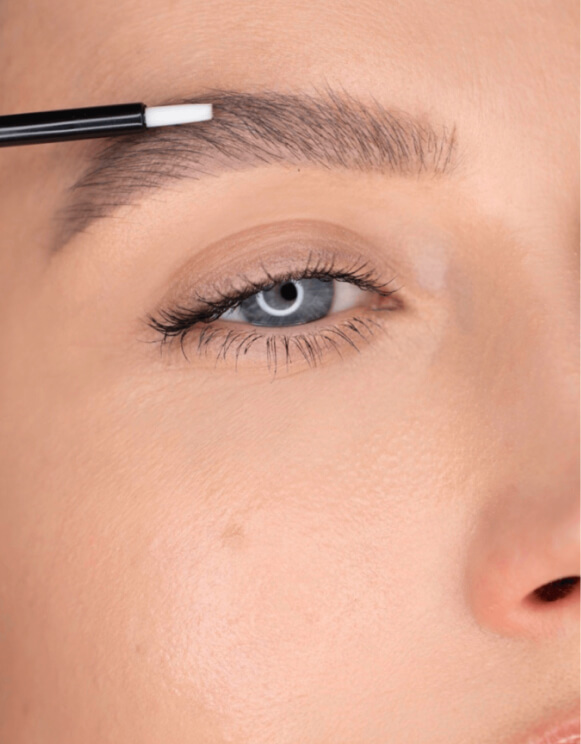 3. Tanek sloj seruma nanesi na očiščeno in suho kožo tik pod lokom obrvi in/ali na ostalih področjih, kjer so obrvi tanke in redke.