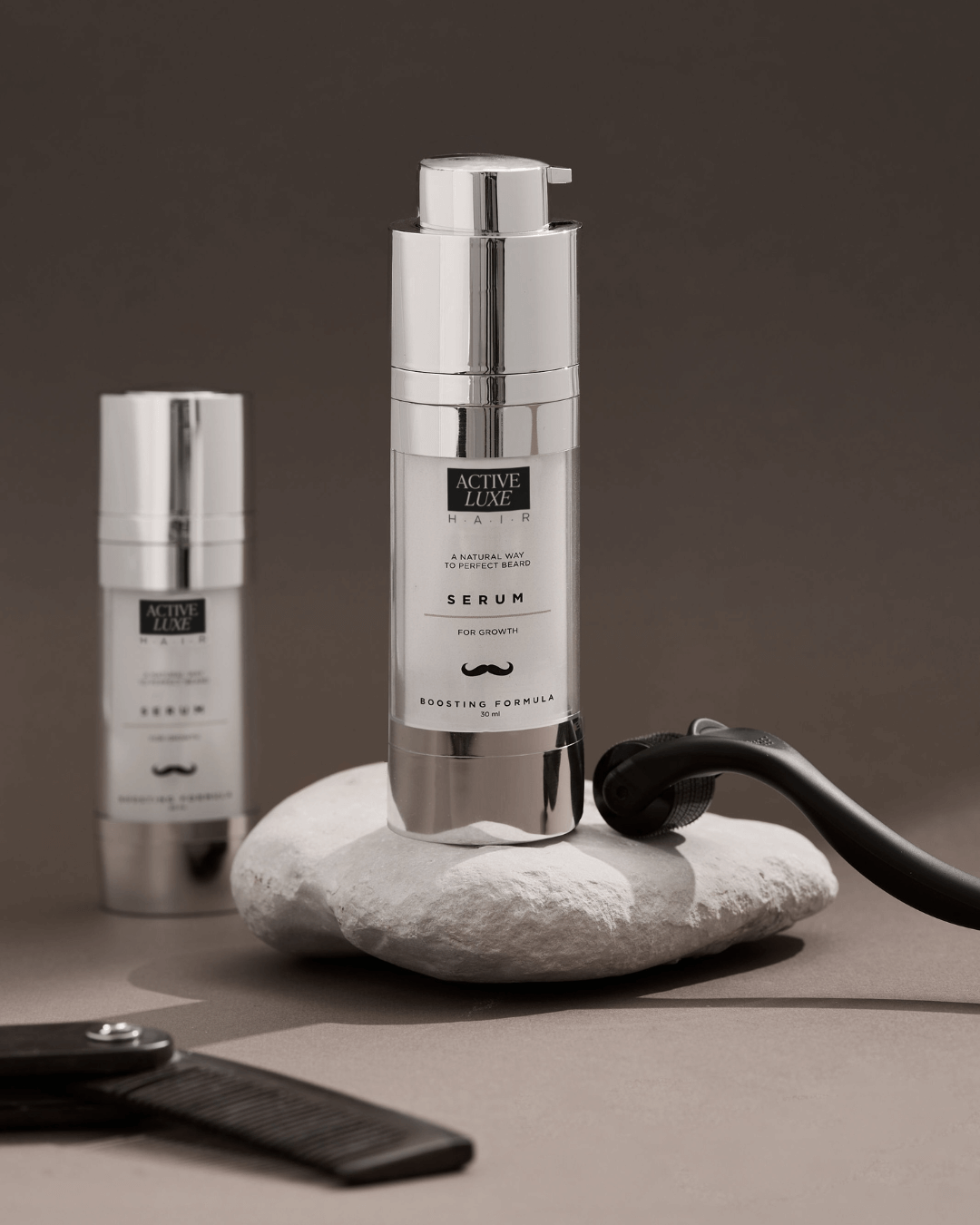 - Nadaljuj z nanosom Active Luxe seruma za rast brade. Serum dokazano zagotavlja bolj polno brado tako, da posamezne dlake okrepi od znotraj navzven in poveča debelino brade. Deluje neposredno na folikularno disfunkcijo (oživlja dlačne mešičke ) in s tem zagotavlja hitrejšo rast dlak in novo rast dlak. Z redno uporabo bo tvoja brada vidno gostejša, polnejša in enakomerno poraščena. Napredna formula deluje kot naravni stimulator rasti, kot hranilo za dlako in gradnik boljše strukture dlake. Kombinacija aktivnih sestavin brado ter kožo pod njo vlaži, jo neguje in preprečuje neprijetno srbečico.